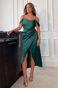 Add a pop of colour to your wardrobe with the Camila Emerald Wrap Over Midi Dress! Show off your beautiful curves