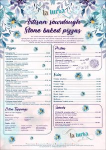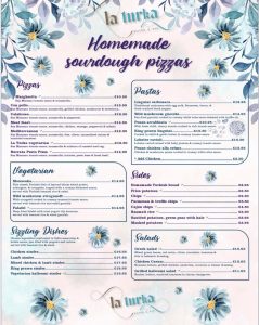 Home made sourdough pizzas, what a treat! Choose yours from the new La Turka menu.