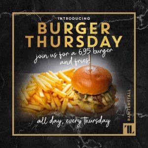 Brand New Offer! Every Thursday tuck in to any of our delicious, homemade burgers & fries. The perfect pre-weekend treat!