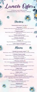 Have a read of this mouth watering menu available Tuesday- Saturday from 12noon This set lunch menu provides a dining